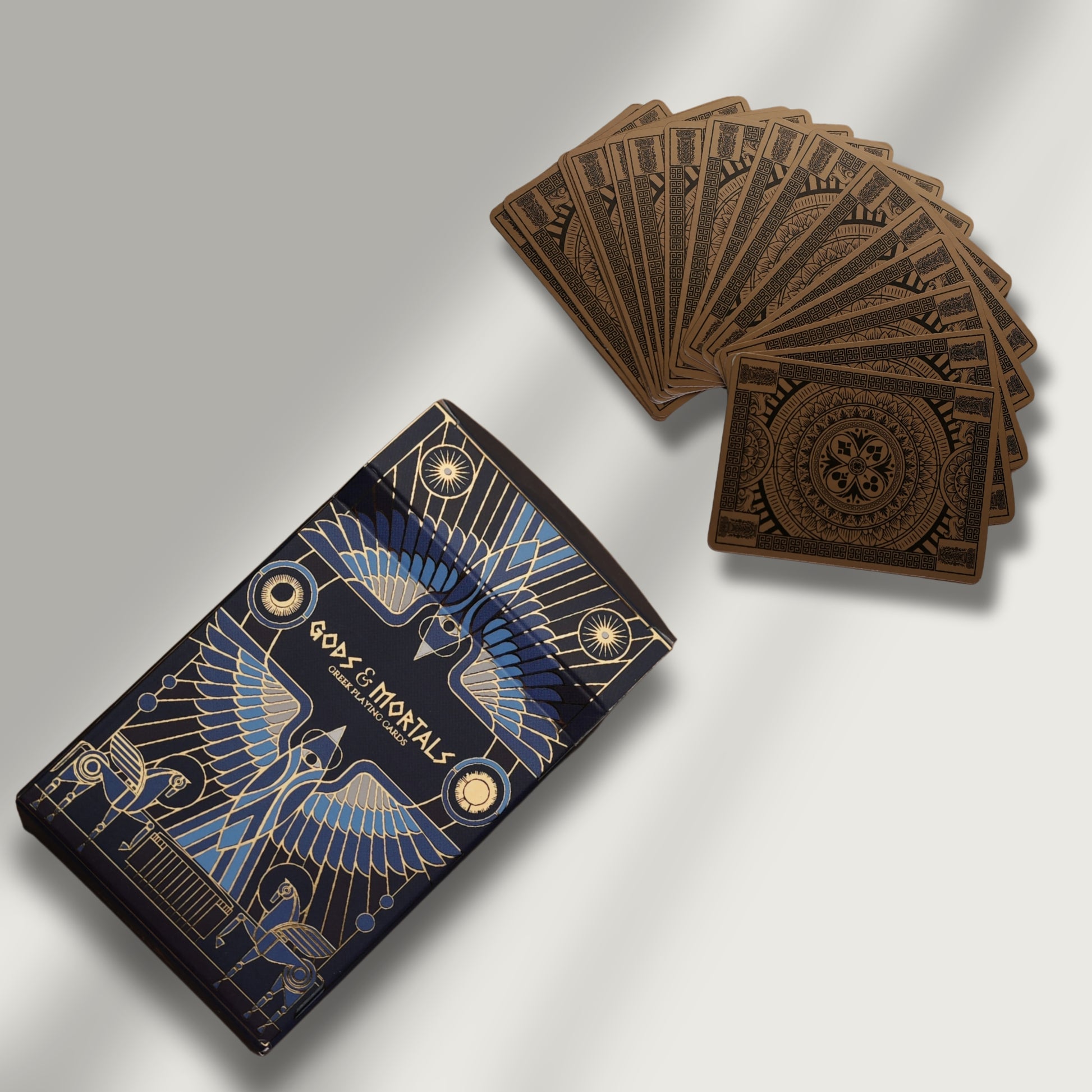 Premium metallic gold–accented card backs inspired by the grandeur and opulence of Mount Olympus